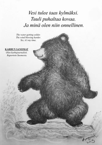 Olen karhu. Asun syvällä metsässä kultani kanssa. Kirjoitan elämästäni siellä.